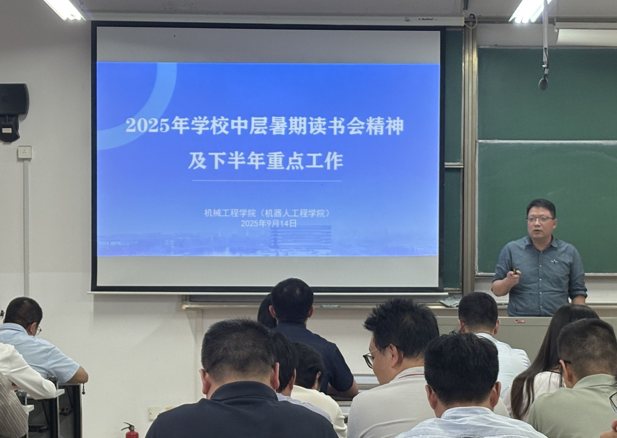 经理朱耀东传达学习2025年暑期中层干部(扩大)读书会精神,与会教职工围绕相关内容深入学习交流。